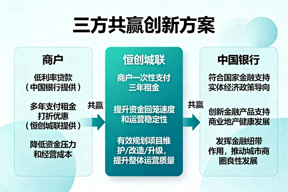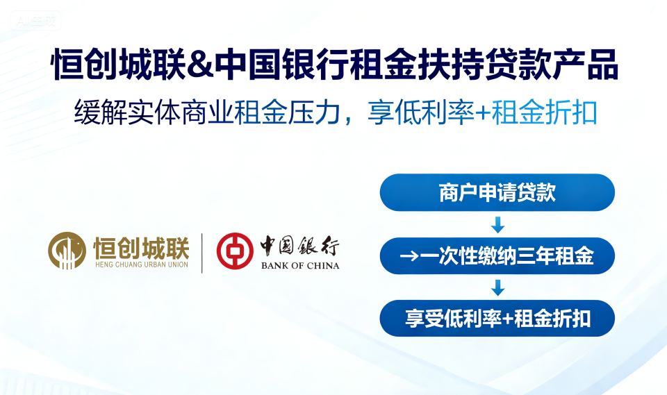 面对实体商业中普遍反映的租金成本压力,恒创城联近日与中国银行合作推出了一款创新的租金扶持贷款产品。