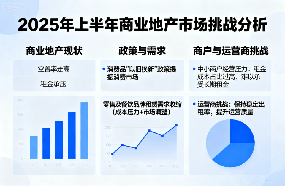 近年来,国内大多数城市的商业地产都面临空置率走高、租金承压等挑战。2025年上半年,尽管消费品“以旧换新”政策一定程度上提振了消费市场,但部分零售及餐饮品牌受成本压力和市场调整影响,商铺租赁需求仍有所收缩。